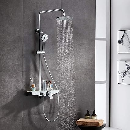 Lonheo Colonne De Douche Hydromassante Avec Etagere Mitigeur Douche Set Baignoire Avec Pomme A Main 5 Modes Changeants Pour Salle De Bain